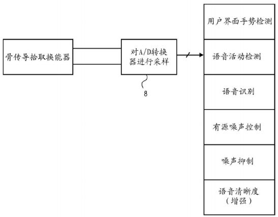 2)算法使用了加速度骨传导传感,改变了过去由空气介质传导声能量,推动某种材料做成的